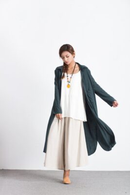 Women linen shirts custom oversized long shirt long sleeves linen tunic dress spring linen maxi shirt coat plus size linen clothing A105