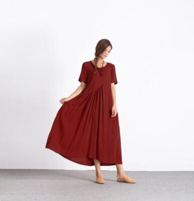 Linen dresses for women, short sleeves linen maxi dress, linen tunic dress, custom oversized linen pleated dress, plus size clothing A26