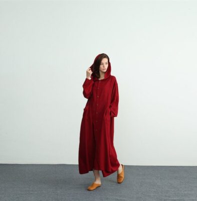 Women linen hooded coat linen long cardigan oversized linen maxi coat spring loose fitting long sleeves dress plus size linen clothing C05