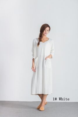 Long sleeve dresses with pockets linen cotton Oversize loose midi dress large size dress plus size linen kaftan dress linen clothing A12