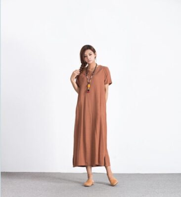Womens linen cotton loose dress Short Sleeves Summer Midi Dresses Bridesmaid dress caftan oversized dress plus size clothing B11